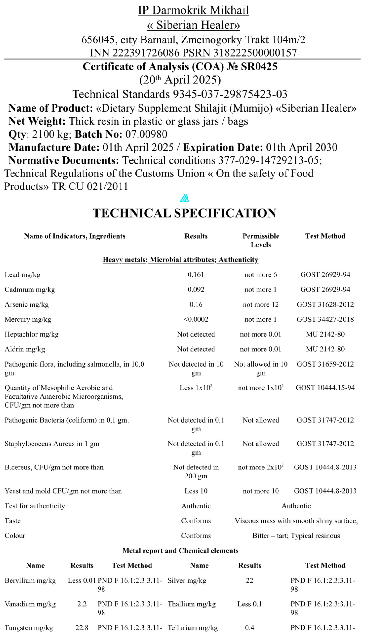 Backed by ISO/IEC 17025-accredited labs (Batch No. 07.00980 – April 2025):